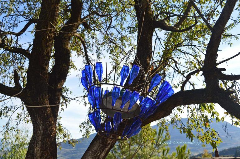 Μία ποικιλία χρηστικών και διακοσμητικών αντικειμένων, γλυπτά, κοσμήματα, κηροπήγια, απλίκες, καρέκλες, τραπέζια, καθρέπτες, παράξενα φωτιστικά από λάμπες και τρίφτες, περίτεχνες κατασκευές και αντικείμενα φτιαγμένα από σίδερο και ξύλο, κοσμούν και αναδεικνύουν κάθε γωνιά.