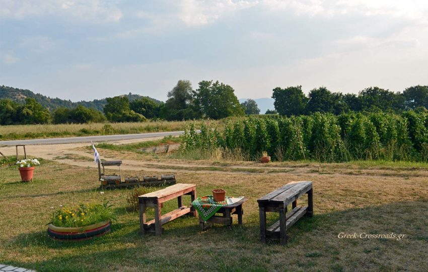Τριγύρω καλλιέργειες με τεράστιες φασολιές που θεριεύουν το καλοκαίρι και δίνουν τα ονομαστά φασόλια Πρεσπών. Να τα δοκιμάσετε οπωσδήποτε.