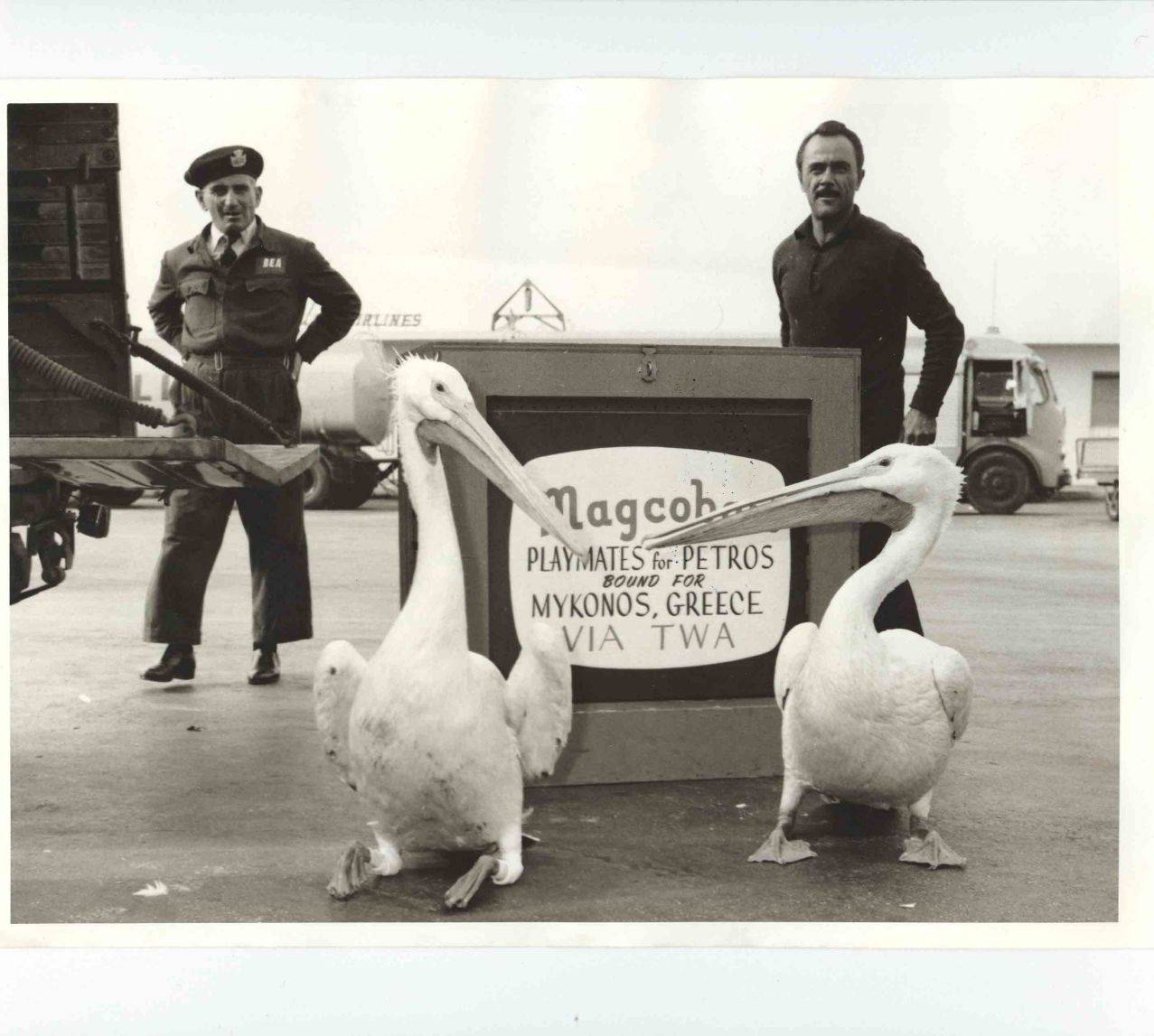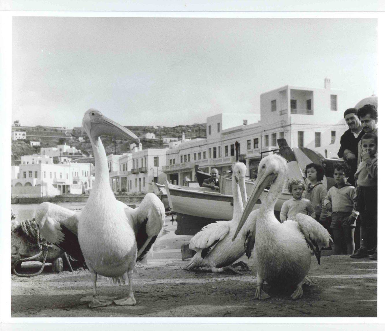 The first pelican arrived on the island on 16th October 1955. He was fished out of the sea by Captain Antonis Haritopoulos who was fishing that afternoon north east of Merhia bay. Exhausted and close to death –it was the first time that the residents of Mykonos had seen such a creature.