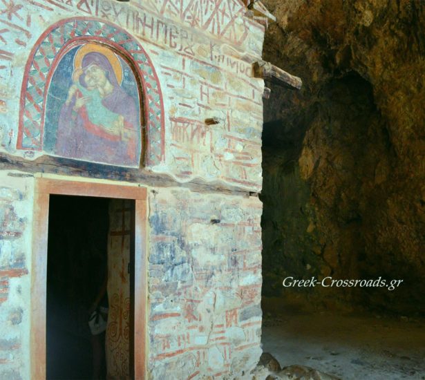 Πρόκειται για το Ασκηταριό της Παναγίας Ελεούσας που οι ντόπιοι έχουν αφιερώσει στον Άγιο Πέτρο.