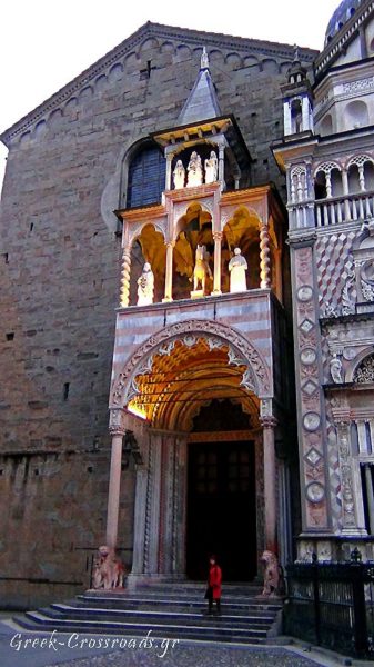 Δίπλα η βασιλική Santa Maria Maggiore, το εξαιρετικό αναγεννησιακό παρεκκλήσι Cappella Colleoni με περίτεχνα σκαλιστά ανάγλυφα και άλλα διακοσμητικά στοιχεία, καθώς και το οκταγωνικό Bαπτιστήριο του 1340.