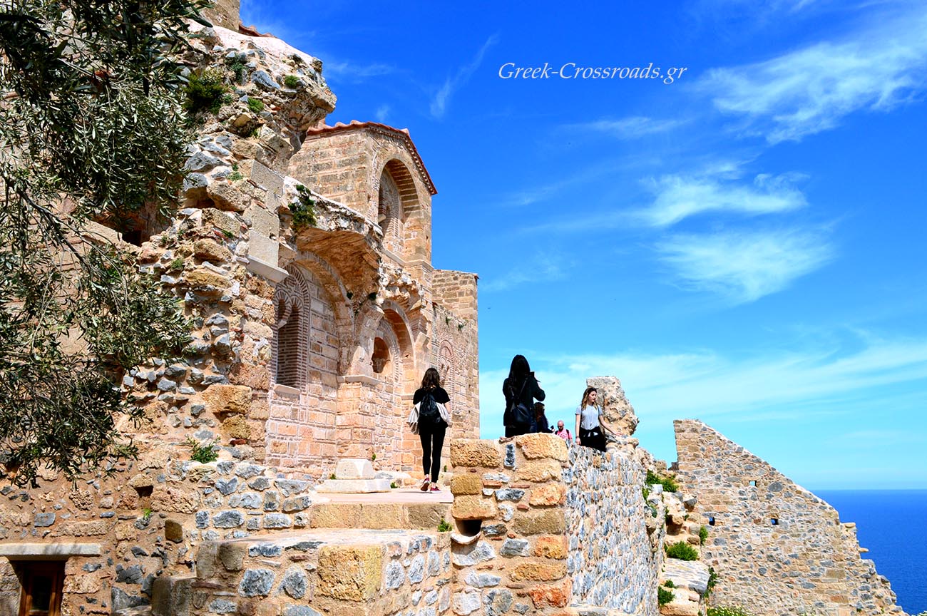 Το πιο γοητευτικό και, ίσως, μυστηριώδες κομμάτι του κάστρου της Μονεμβασιάς είναι η Άνω πόλη στην κορυφή του βράχου, στο λεγόμενο Γουλά.