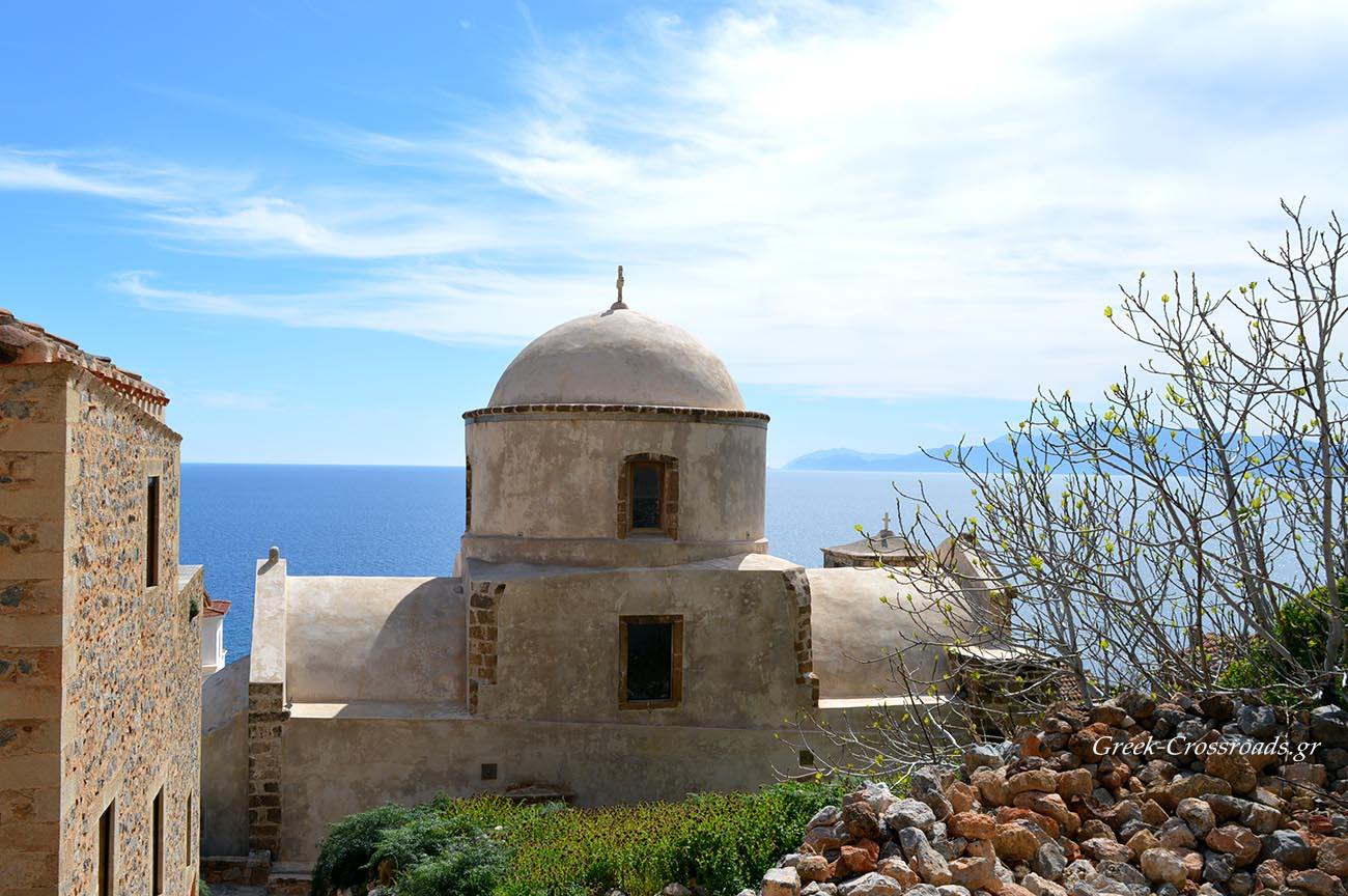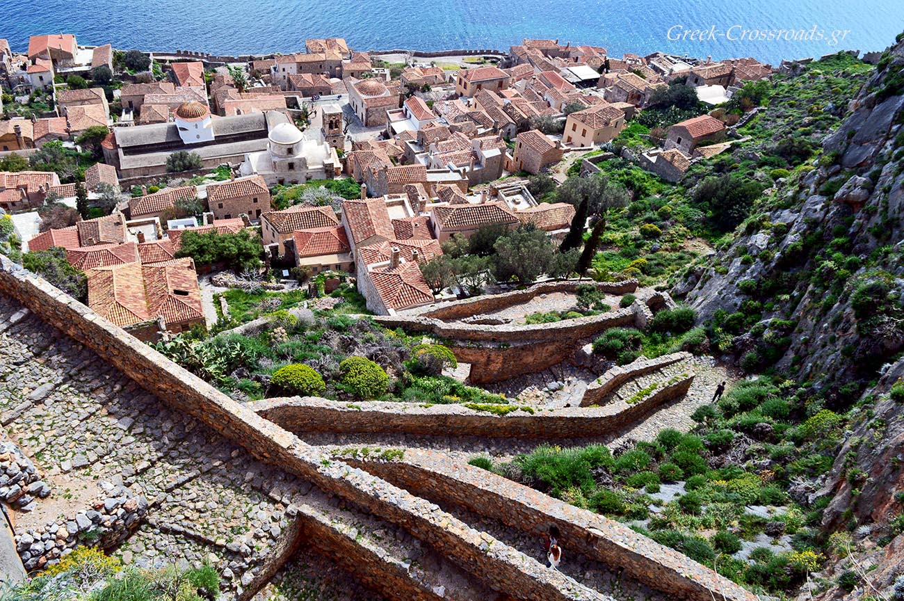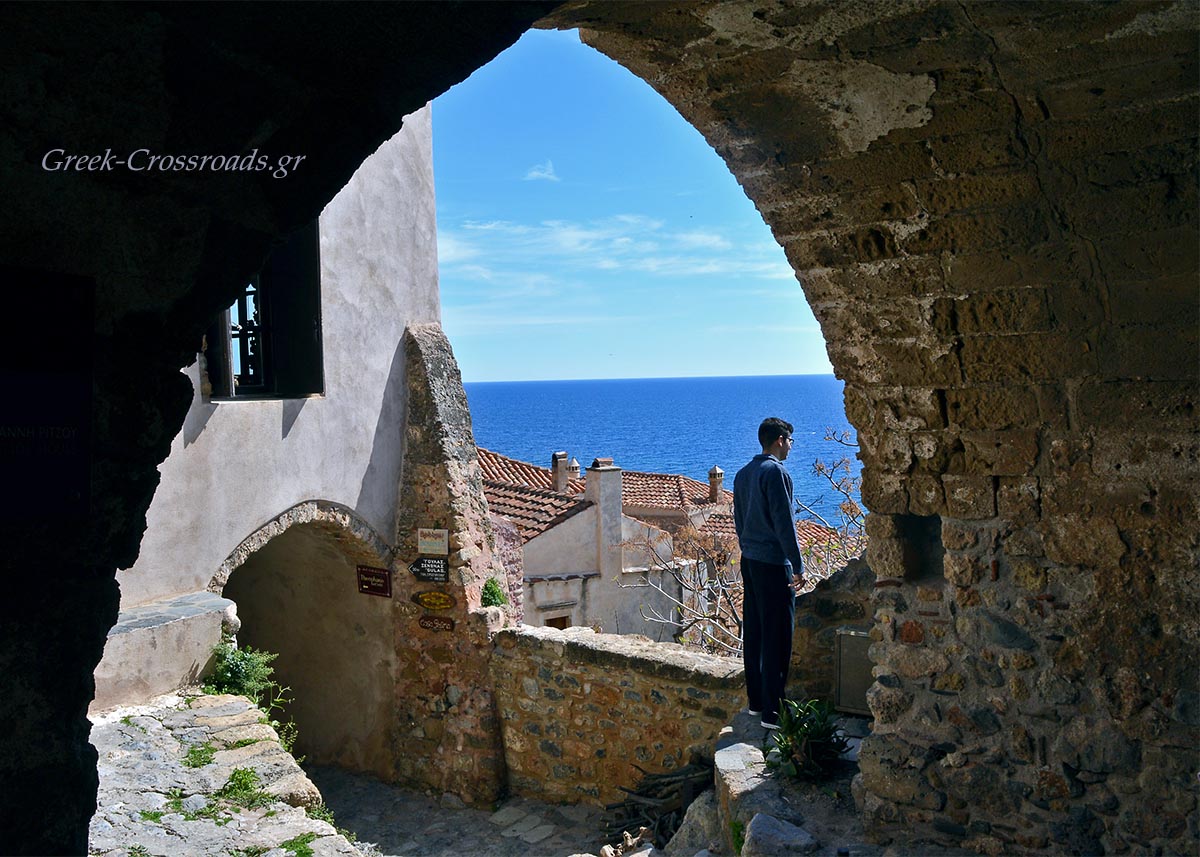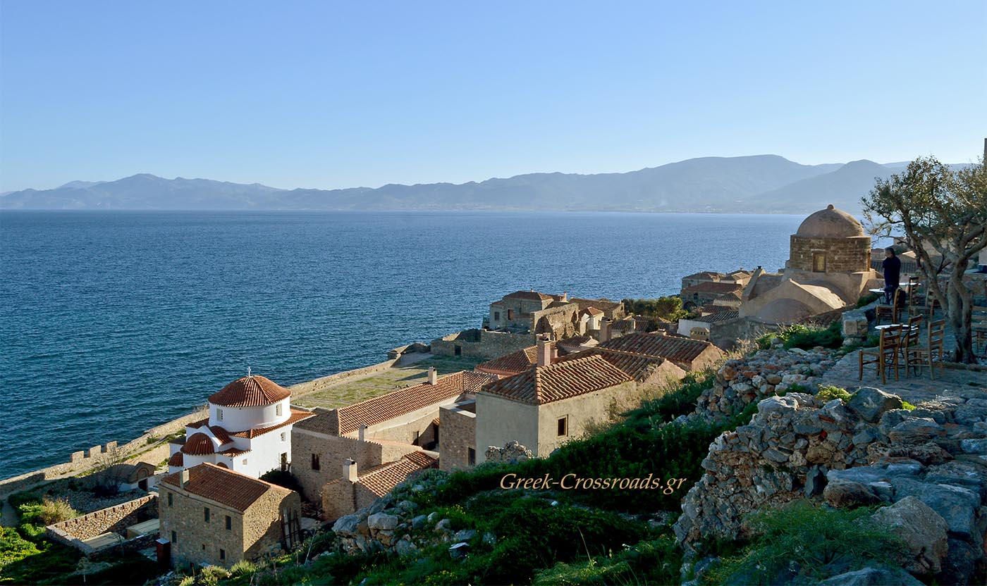 Όποιος προσεγγίζει το βράχο της Μονεμβασιάς δια θαλάσσης αντικρίζει μία αξέχαστη εικόνα, καθώς η μικρή μεσαιωνική πολιτεία προβάλλει αχνή σε όλο της το μεγαλείο, σφηνωμένη στο βράχο, περιφραγμένη από τα τείχη της που κατεβαίνουν απότομα ως τη θάλασσα…
