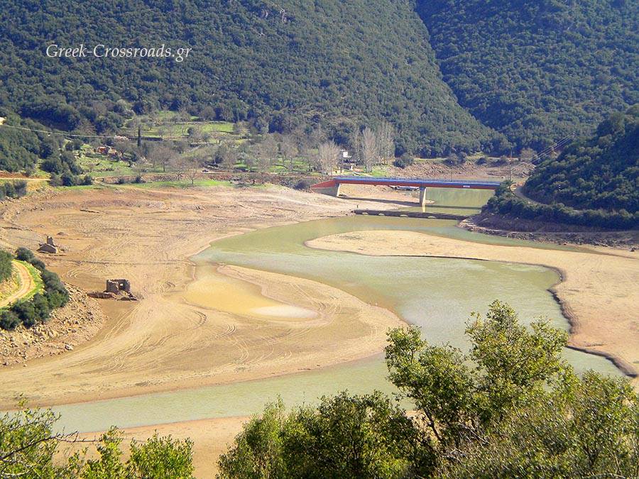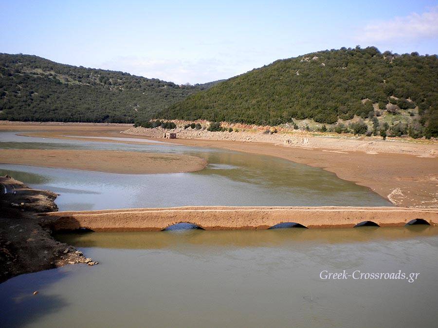 Πρόκειται για ένα πέτρινο γεφύρι του 13ου αιώνα που αναδύεται από το λασπωμένο βυθό της τεχνητής λίμνης κατά το φθινόπωρο, όταν τα νερά υποχωρούν και η στάθμη τους κατεβαίνει.