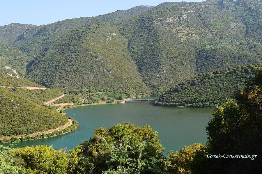 Στα αξιοθέατα περιλαμβάνεται και το εντυπωσιακό τσιμεντένιο φράγμα που συγκρατεί τον όγκο των νερών του ποταμού. ‘Εχει μήκος 105 μ. και ύψος 57μ. και βρίσκεται στη θέση “Πήδημα”. Η κατασκευή του φράγματος άρχισε το 1950 και ολοκληρώθηκε το 1955 από Ιταλούς, στο πλαίσιο των πολεμικών αποζημιώσεων της Ιταλίας για τις καταστροφές που υπέστη η Ελλάδα κατά τον Β’ Παγκόσμιο Πόλεμο.
