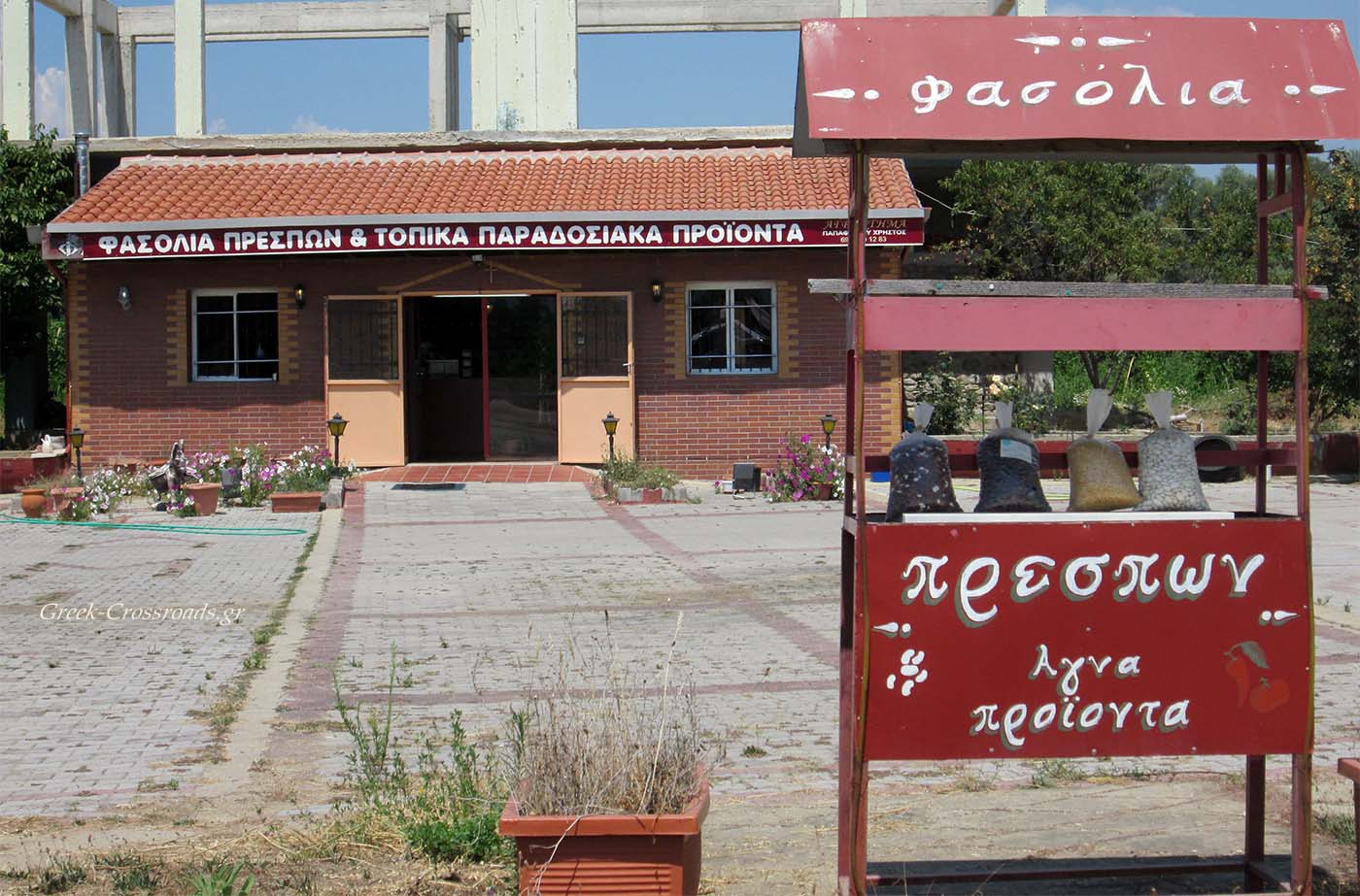 Τριγύρω καλλιέργειες με τεράστιες φασολιές που θεριεύουν το καλοκαίρι και δίνουν τα ονομαστά φασόλια Πρεσπών. Να τα δοκιμάσετε οπωσδήποτε.