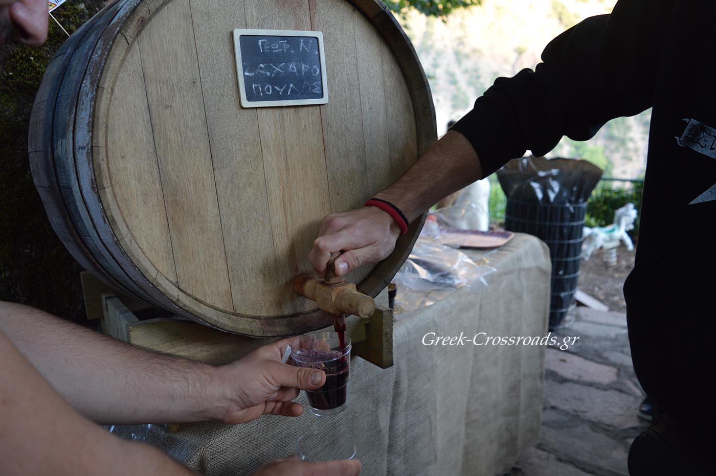Το κρασί έρεε άφθονο και προσφερόταν δωρεάν, προσφορά των κατοίκων της Χελιδόνας για να γνωρίσει ο κόσμος το κρασί που παράγει ο τόπος.