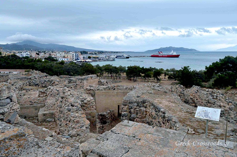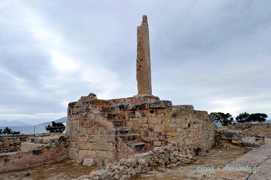Πολύ κοντά στο λιμάνι, αριστερά όπως αποβιβαζόμαστε από το πλοίο, βρίσκεται ο αρχαιολογικός χώρος της Κολώνας.